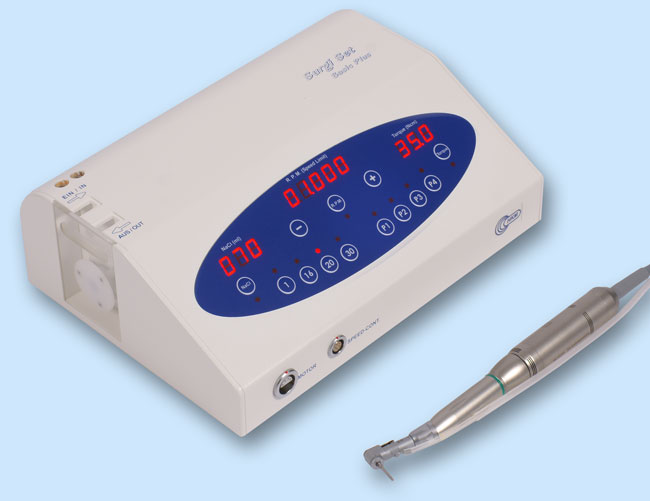 Folientastatur 5 individuell einstellbare Programme für perfekte Bohr-, Schraub-und Endodontiefunktion 3 übersichtliche lichtstarke Display`s Stufenloses Torque-Kontrollsystem 0 - 70 Ncm mit Feineinstellung Hochleistung Kollektorloser DC Micromotor. Die Surgi Set Basic Plus ist ein leistungsstarkes Kompaktgerät für alle Bereiche der Zahnimplantologie und Zahnchirurgie. In bewährten serienmäßig geliefertem Aufbewahr- und Transportkoffer in idealer Weise geeignet für den mobilen Einsatz. |